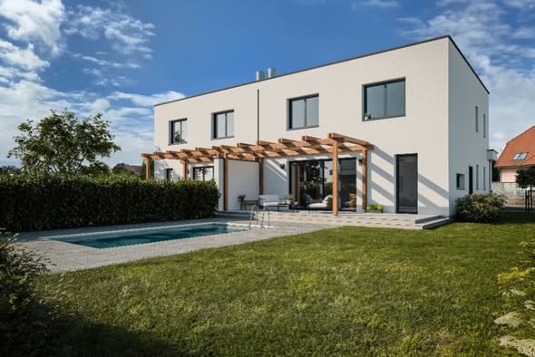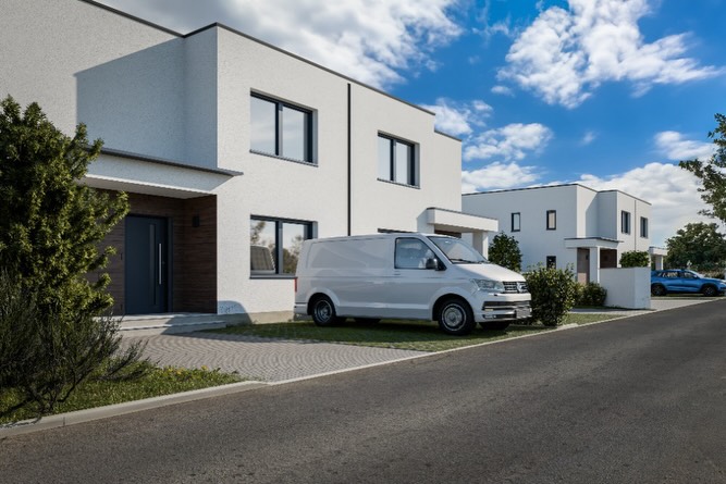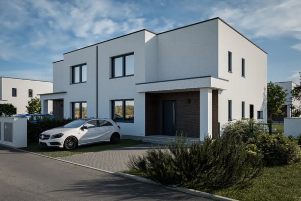 V současné době jsme zahájili výstavbu čtyř rodinných dvojdomků v Bořanovicích. Moderní stavby s plochou střechou disponují dispozicí 5+kk a dvěma parkovacími místy. Obytná plocha každého domu činí 139 m².