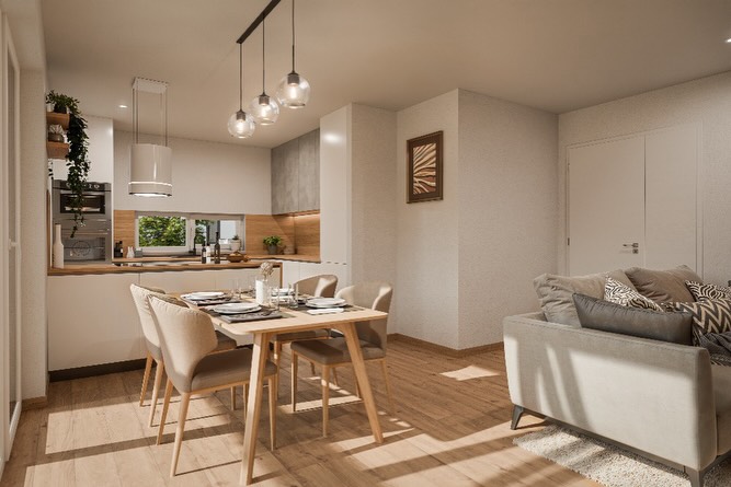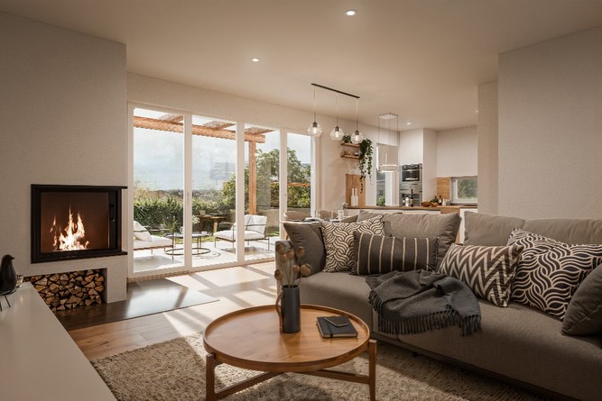 Vytápění je řešeno teplovodním podlahovým systémem s tepelným čerpadlem vzduch–voda. Domy jsou připraveny na instalaci krbu i fotovoltaického systému, což přináší úsporný a ekologický provoz. Zahrádky jsou orientovány na jih a poskytují dostatek soukromí.